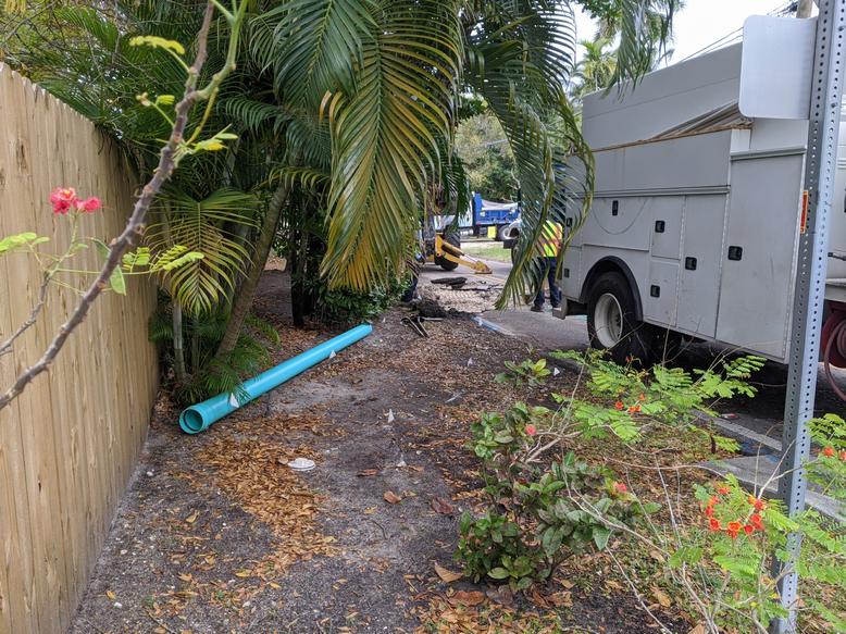 Another week they showed up with half a dozen trucks plus a back hoe and other equipment, closed the road down and excavated the entire length from the 6" CO to where they need to tie in.