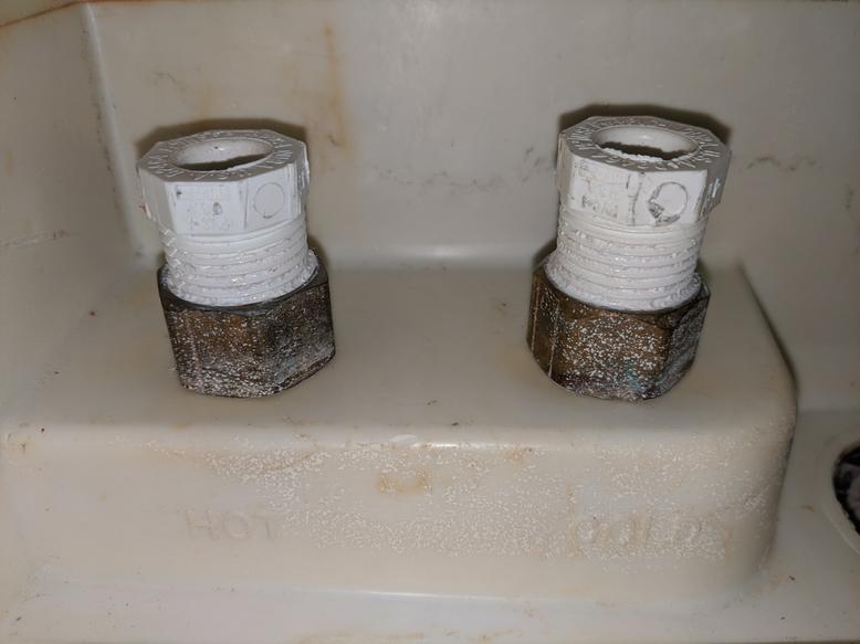 I just looked closely at the valves themselves, something I failed to do because I have been replacing the other valves in this apartment in the last month and all of them were compression connections to CPVC.